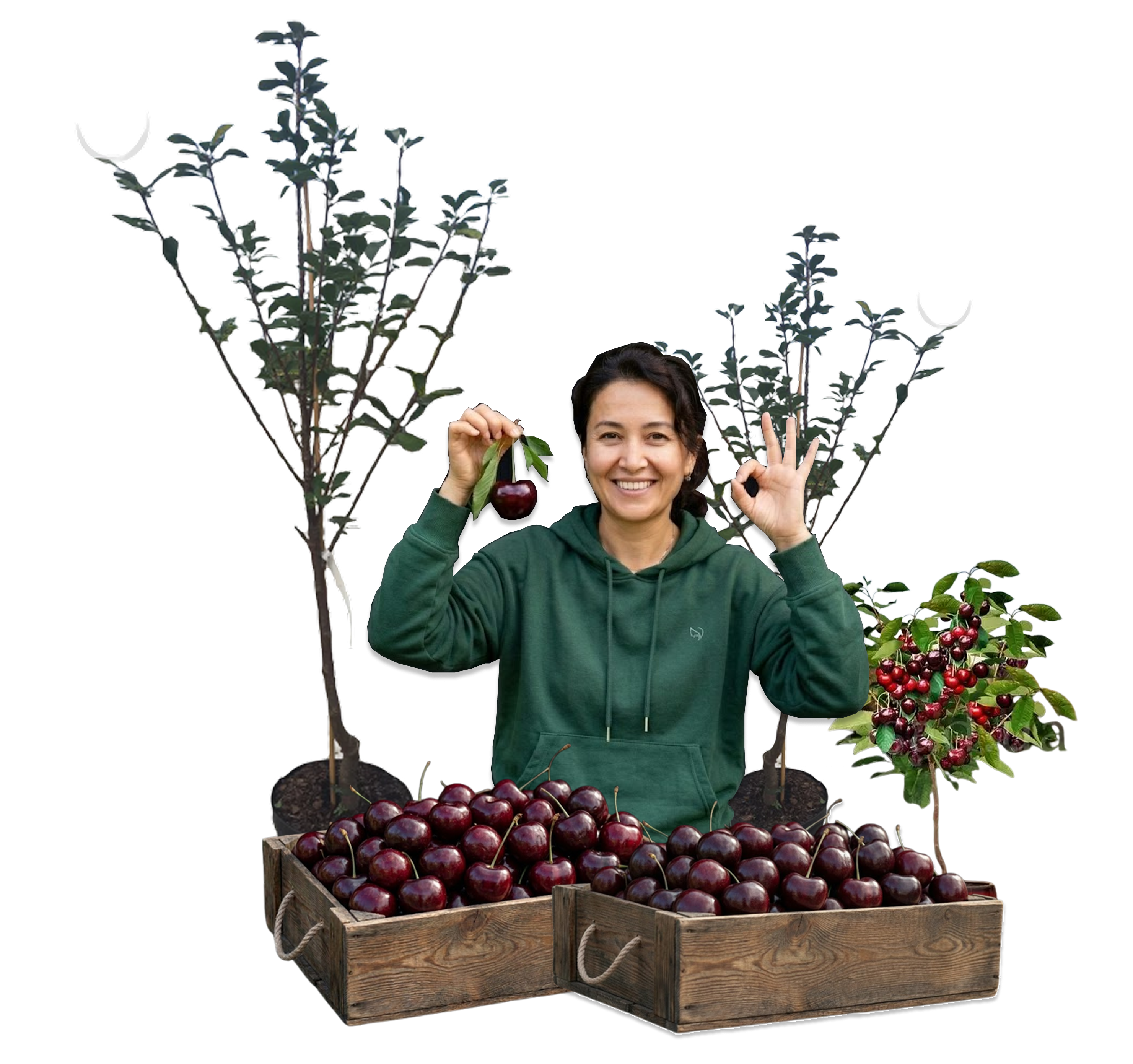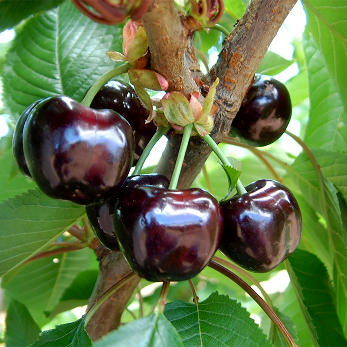 Саженцы черешни сорта Канадский Гигант — высокоурожайный сорт, который начинает активно плодоносить уже в первый сезоны. Масса одного плода достигает 20–30 г, а урожайность может составлять до 50 кг с одного дерева.